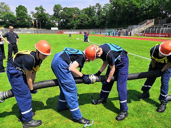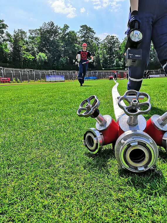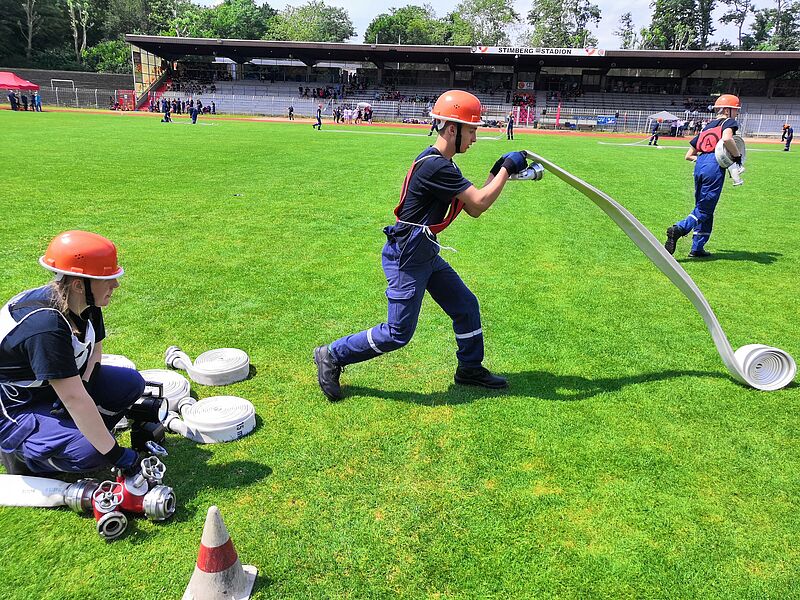 Ausrichter für die Abnahme war die Jugendfeuerwehr Oer-Erkenschwick, im Kreis Recklinghausen. Im Stimbergstadion traten bei bestem Wetter insgesamt 25 Gruppen aus ganz Nordrhein-Westfalen an, um die geforderten Aufgaben zu bewältigen.