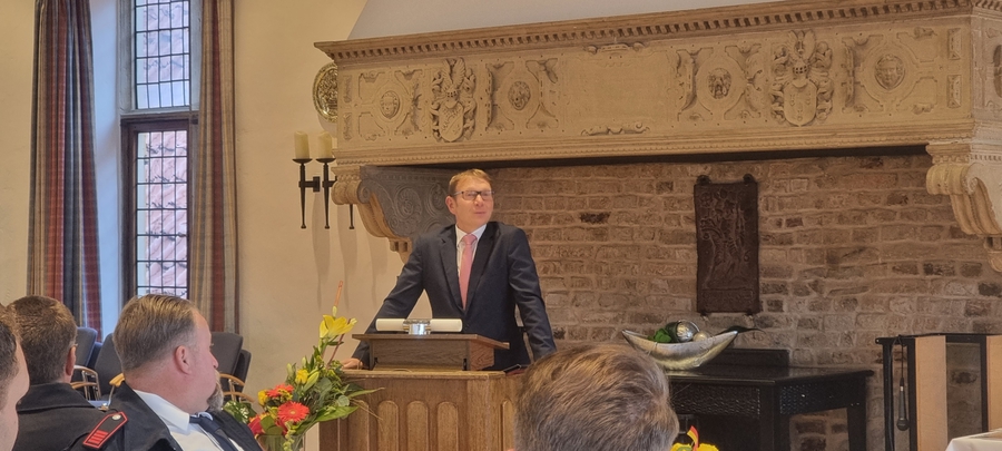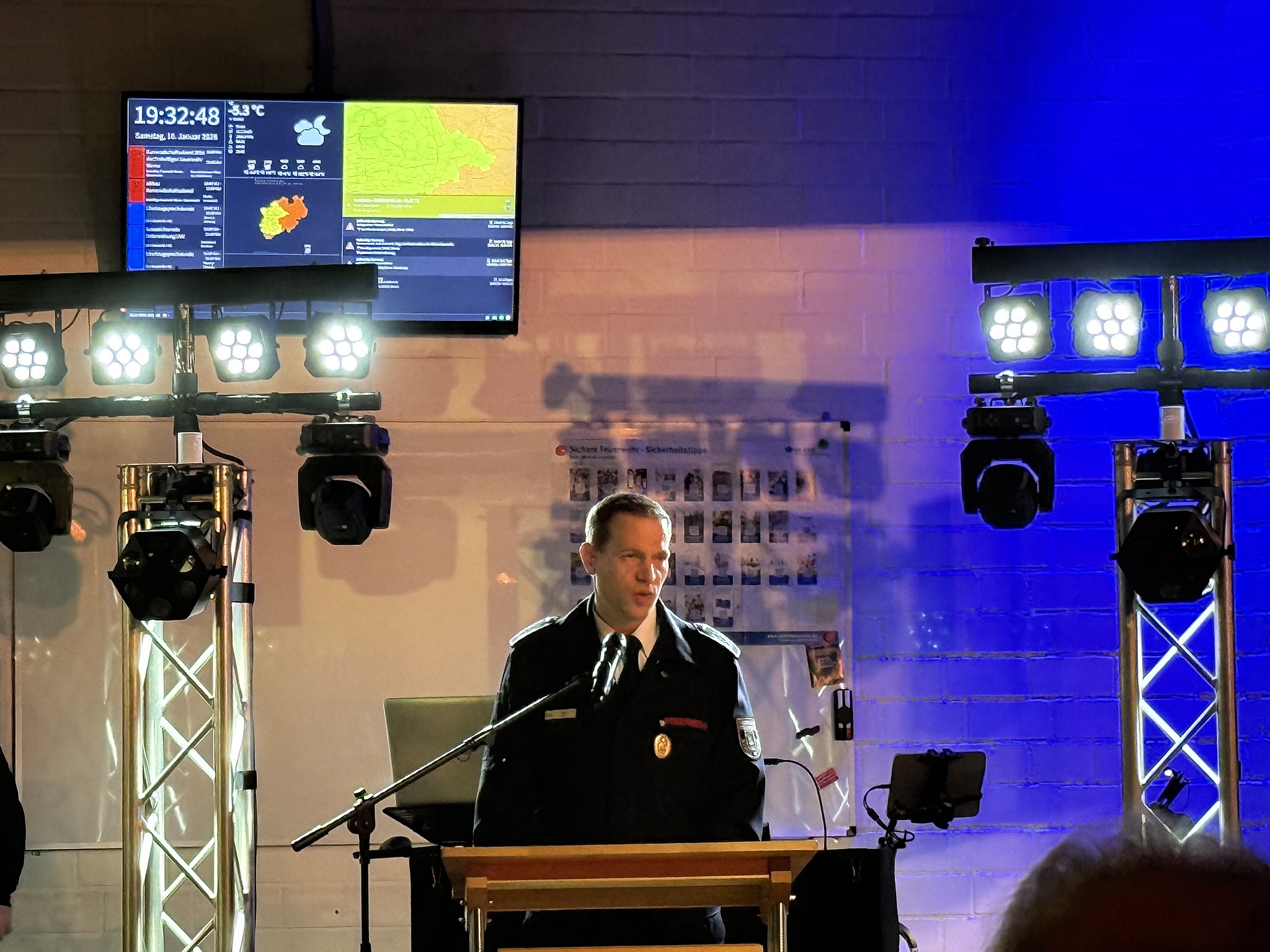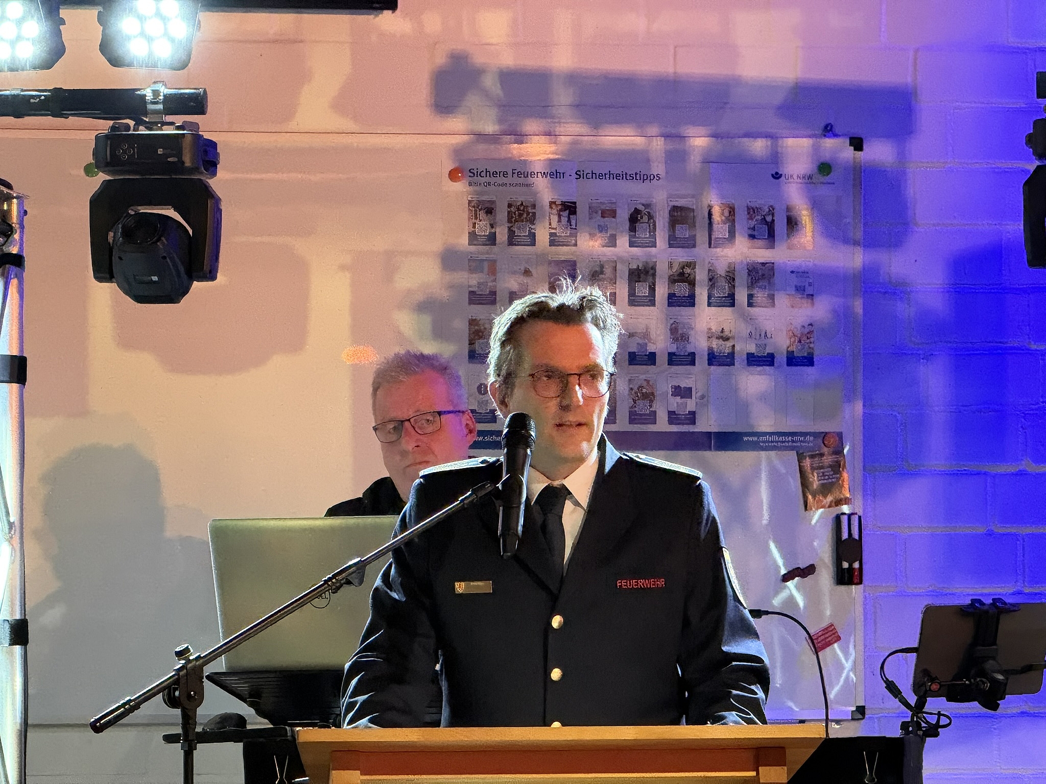 Auch Kreisbrandmeister René Wauro dankte den Kameradinnen und Kameraden sowie deren Partnern und Arbeitgebern für die Unterstützung des Ehrenamtes. Er betonte die stetig wachsenden Anforderungen an die Feuerwehren und hob die Bedeutung moderner Ausrüstung sowie einer fundierten Ausbildung hervor.