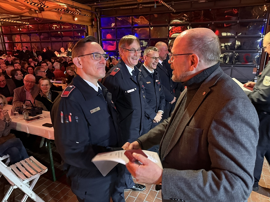 Der Kameradschaftsabend bot darüber hinaus viel Raum für Austausch und Gespräche. Vertreter von THW, DRK, Polizei, Notfallseelsorge und Rettungsdienst nutzten die Gelegenheit zum Dialog mit Feuerwehr, Politik und Verwaltung. Zu den Klängen von DJ Andreas Büscher wurde bis in die späten Abendstunden gefeiert.