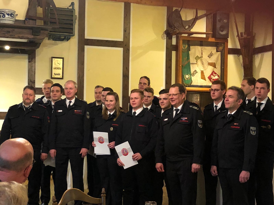 Die Sonderauszeichnung des Verbandes der Feuerwehren für 10 Jahre Mitgliedschaft erhielten Mike Georg, Jonas Hoselmann, Marcel Kaleta und Mark Seeland.