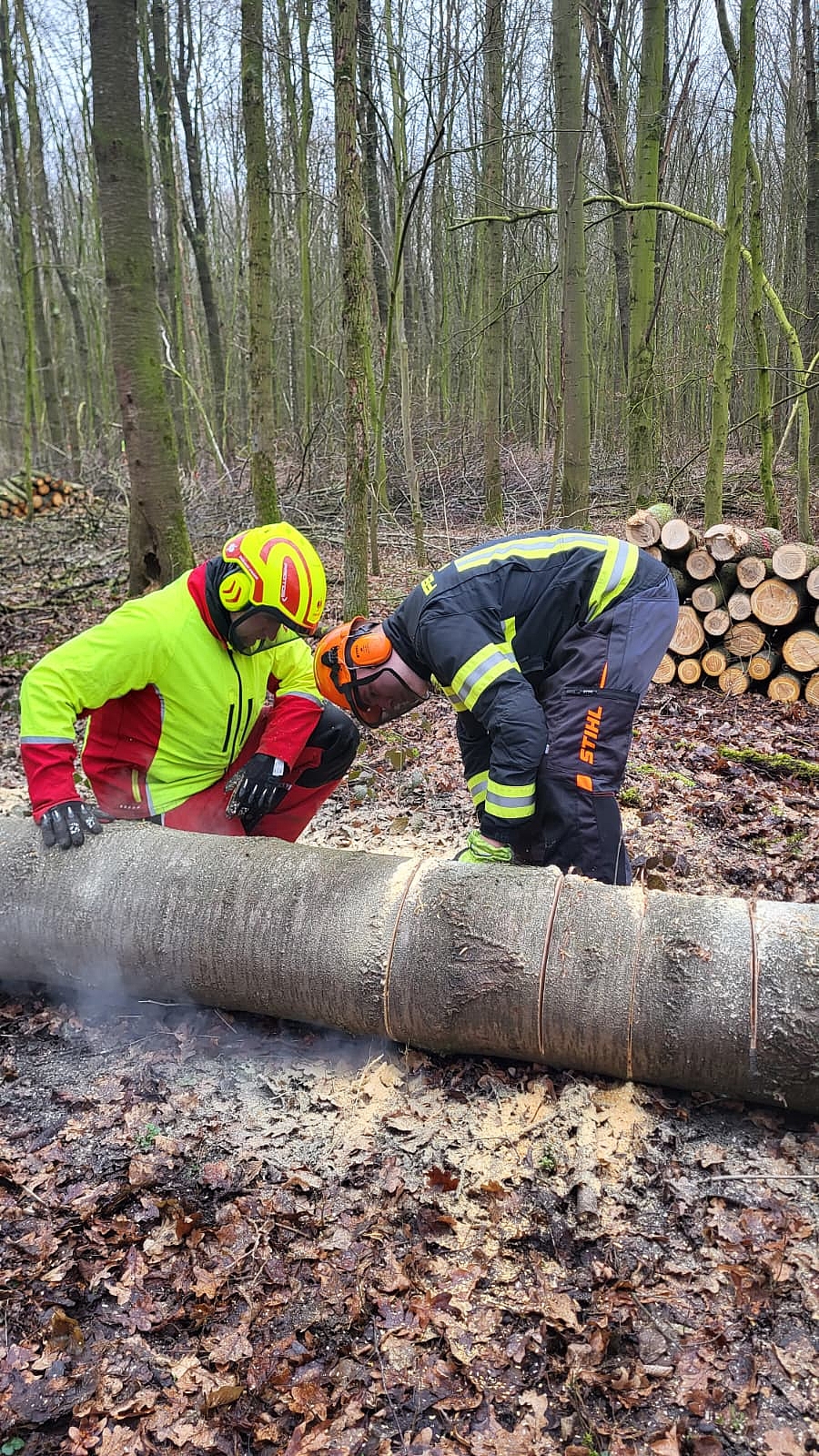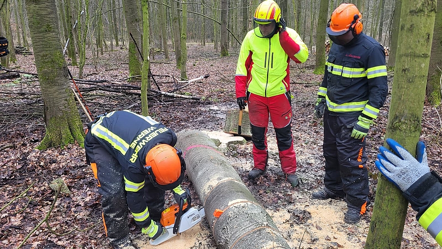 Alle Teilnehmenden haben die Module "Grundlagen der Motorsägenarbeit" und "Baumfällung und Aufarbeitung" erfolgreich abgeschlossen. Ein herzliches Dankeschön an das Ausbilderteam der Freiwilligen Feuerwehr Bergkamen, die sich in diesem Jahr zum vierten Mal bereit erklärt haben, den Lehrgang für unsere Kameradinnen und Kameraden durchzuführen.