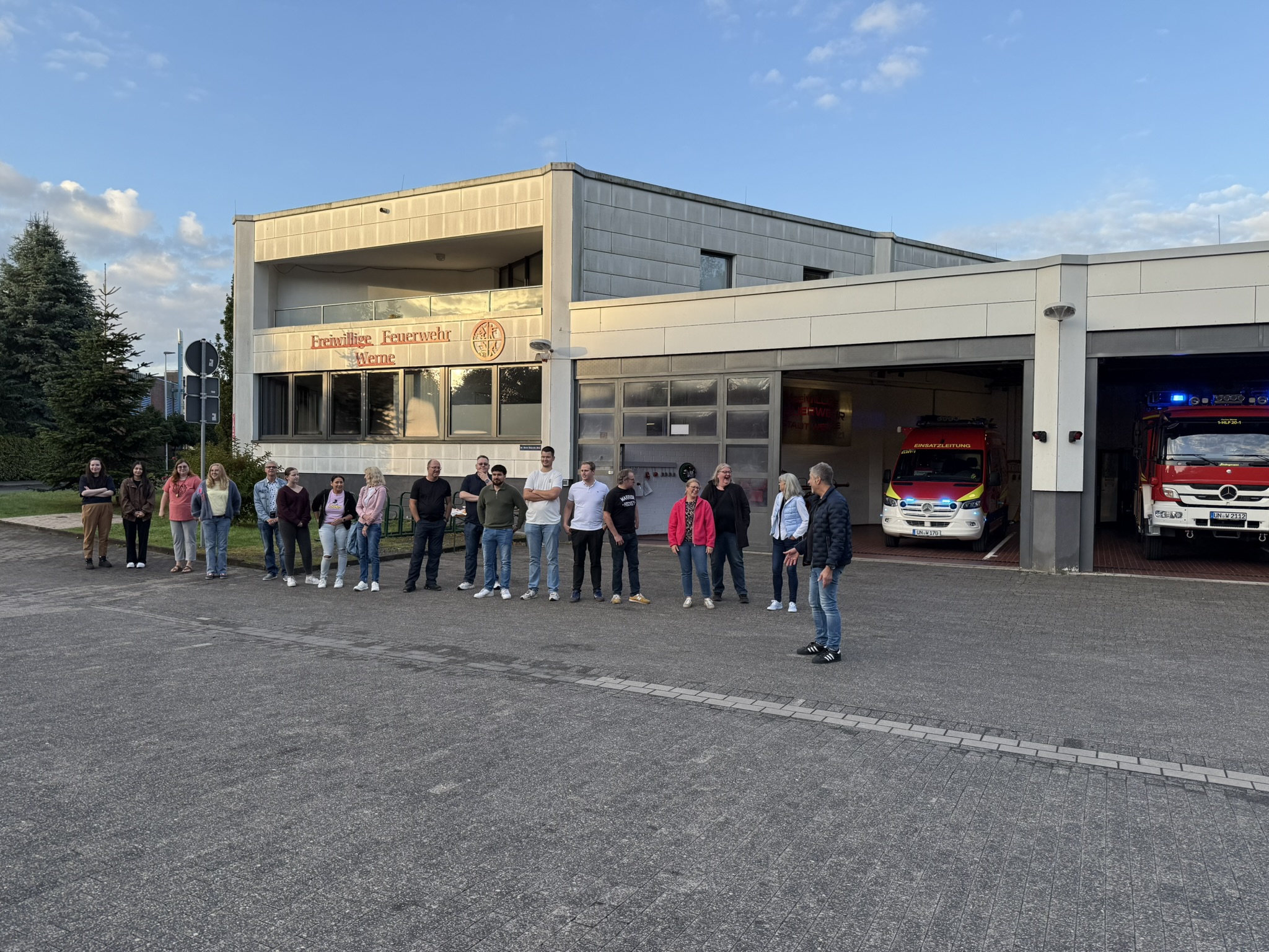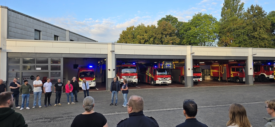 Am Feuerwehrgerätehaus Werne - Mitte standen dann die Kolleginnen und Kollegen des Dezernates V Spalier und haben Werner mit Applaus empfangen. Werner war sichtlich gerührt und sprachlos, was alle Kolleginnen und Kollegen als Überraschung für ihn vorbereitet haben.