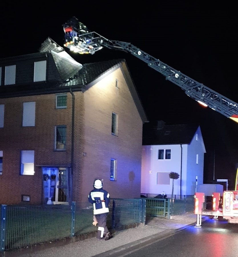 TH_1 - LZ1 - Dach abgedeckt, Teile drohen abzustürzen, Zweifamilienhaus, an der Dachgaube