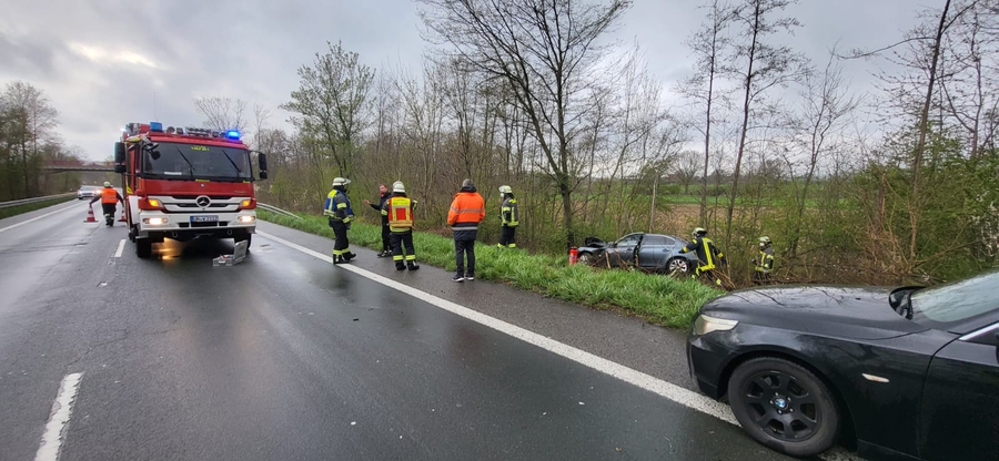 FEUER_1 - LG4 - LZ1 - VU 1 PKW vor einen Baum gefahren,1 Verletzter, PKW brennt