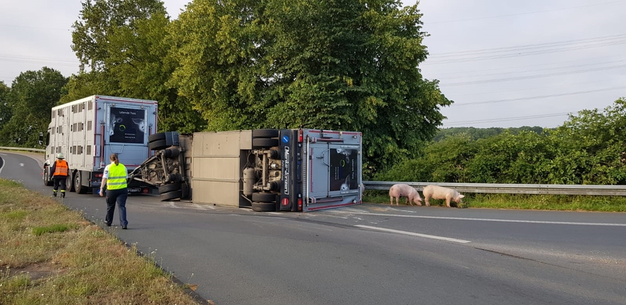 TH_2 - LZ1 - Umgestürzter Schweinetransporter, keine Person eingeklemmt