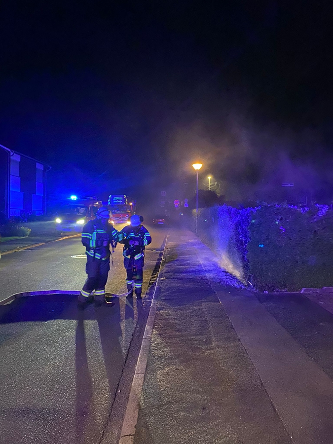 FEUER_2 - LZ1 - Heckenbrand, droht auf Garage überzugreifen