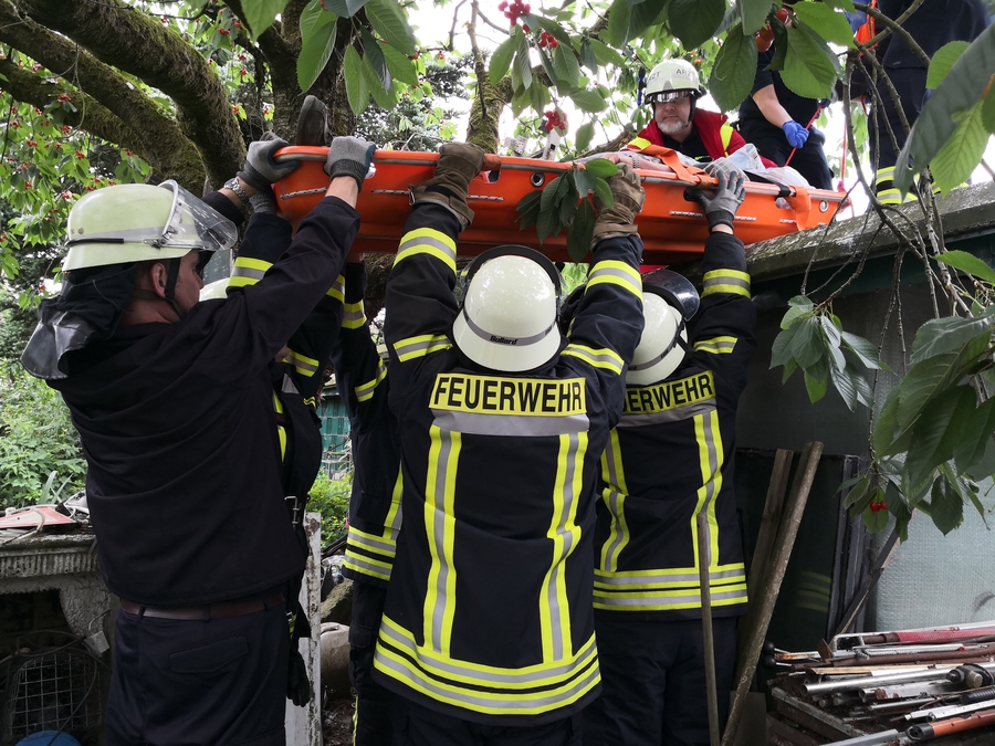 TH_ABSTURZ – Sturz von der Leiter, liegt auf dem Dach, bewusstlose Person