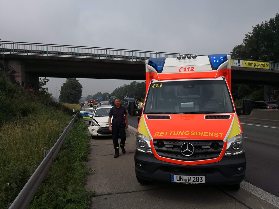 TH_1 - höhe Autobahn, eine verletzte Person nach VU, auslaufende Medien?