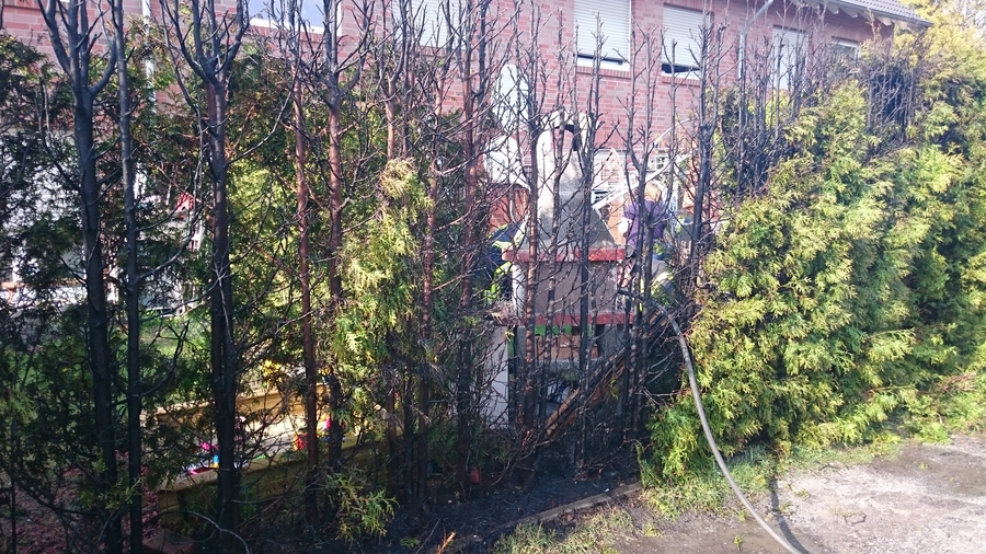 Gartenhausbrand droht auf Gebäude überzugreifen