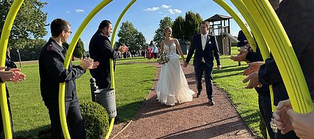 Am Freitag, den 30. September 2022 gab unser Kamerad und Geschäftsführer Tobias seiner Yvonne auf dem Hof Gut Kump in Hamm das Jawort. Wie es so üblich ist, wenn ein Feuerwehrkamerad heiratet, standen die Kameradinnen und Kameraden, vor dem Hof spalier.