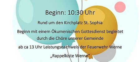 Am Samstag, den 17.09.2022 fand das Gemeindefest in Stockum statt. Den Start lieferte der ökumenische Gottesdienst in der Kirche St. Sophia, begleitet durch die Chöre der Gemeinde. Danach gab es Kinderschminken, Ballonkünstler und natürlich Speis und Trank.
