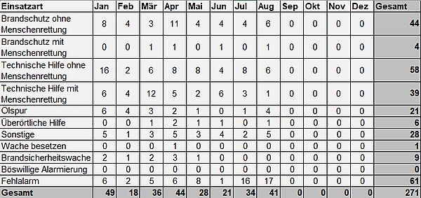 Wenig beliebt, aber für die Feuerwehr zunehmend mit hohem Aufwand verbunden sind die Ölspuren, die sehr kontinuierlich zunehmen: 2023 44 Alarmierungen und 2024 58 Alarmierungen, bei denen zum Teil sehr lange Ölspuren den Verkehr und/oder die Umwelt gefährdet haben. Oft helfen hierbei die üblichen Bindemittel nicht mehr, da beispielsweise Additive wie Ad Blue ausgetreten sind oder sonstige Fette aus der Ladung verloren wurden. Für solche Einsätze müssen dann Spezialunternehmen zur thermischen Straßenreinigung beauftragt werden. Ein Vorteil ist jedoch, dass Einsatzleiter heute erheblich früher solche Spezialunternehmen beauftragen. Das reduziert die Zeit, die die ehrenamtlichen Kräfte an der Einsatzstelle verbringen.
